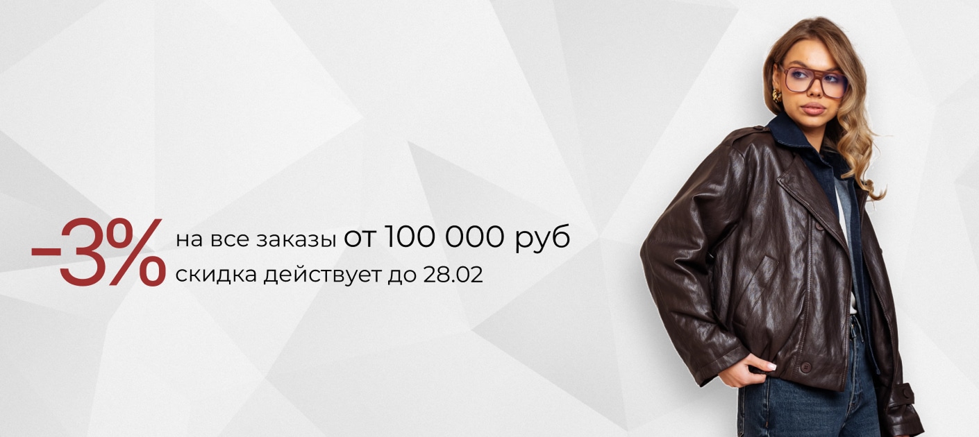 - Порог: скидка применяется при сумме заказа от 100 000 ₽ (включительно).