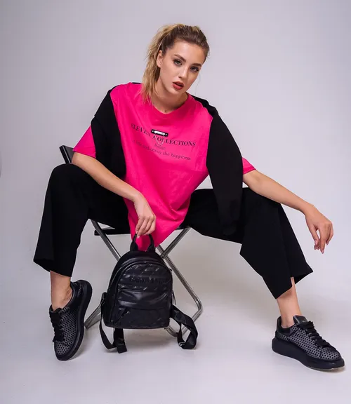 Футболка классического фасона, прямого кроя, с коротким рукавом и округлым вырезом. Декорирована принтом и цепочкой. Универсальная модель футболки отлично подойдет для любого образа и станет необходимой вещью в гардеробе каждой модницы.