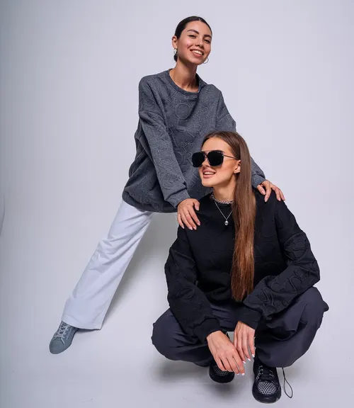 Свитшот-свободного кроя, оверсайз. Молодежный, стильный, супер модная вещь! Его можно комбинировать с джинсами, бойфрендами, юбкой плиссе. Благодаря нему легко создавать неотразимый образ.