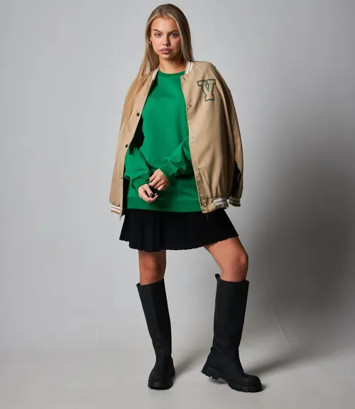 Укороченная свободная футболка в полоску. Данную модель можно носить как в спортивном стиле, так и в повседневном.