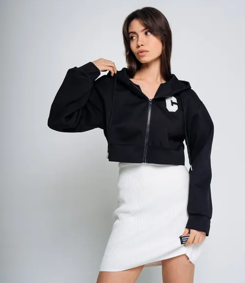 Укороченная толстовка уже ни один сезон является трендовым элементом гардероба. Она удобна как для занятия споротом, так и для прогулок.