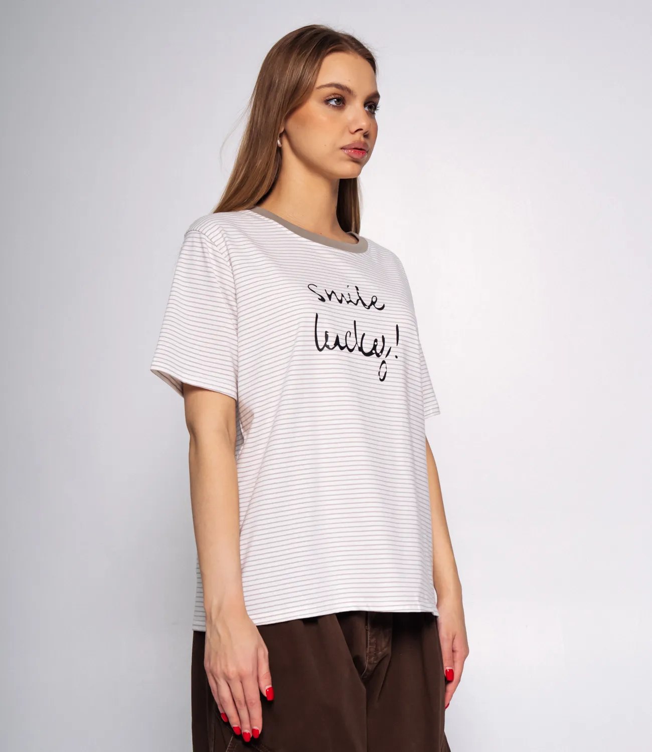 Футболка прямого кроя с горизонтальной полоской, надписью и окантовкой на рукаве - это модель, которая сочетает в себе классический стиль и интересные детали. Прямой крой футболки обеспечивает свободу движений и комфорт при носке. Она подчеркивает линии фигуры, сохраняя при этом расслабленный вид. Горизонтальная полоска на футболке создает стильный и элегантный эффект. Окантовка на рукаве придаёт футболке дополнительный акцент и завершенный вид. Такую футболку можно сочетать с различными нижней одеждой, от джинсов до юбок или шорт. Вы можете создавать разнообразные образы, дополняя футболку аксессуарами и обувью. Рост 168 см, 89-63-90.