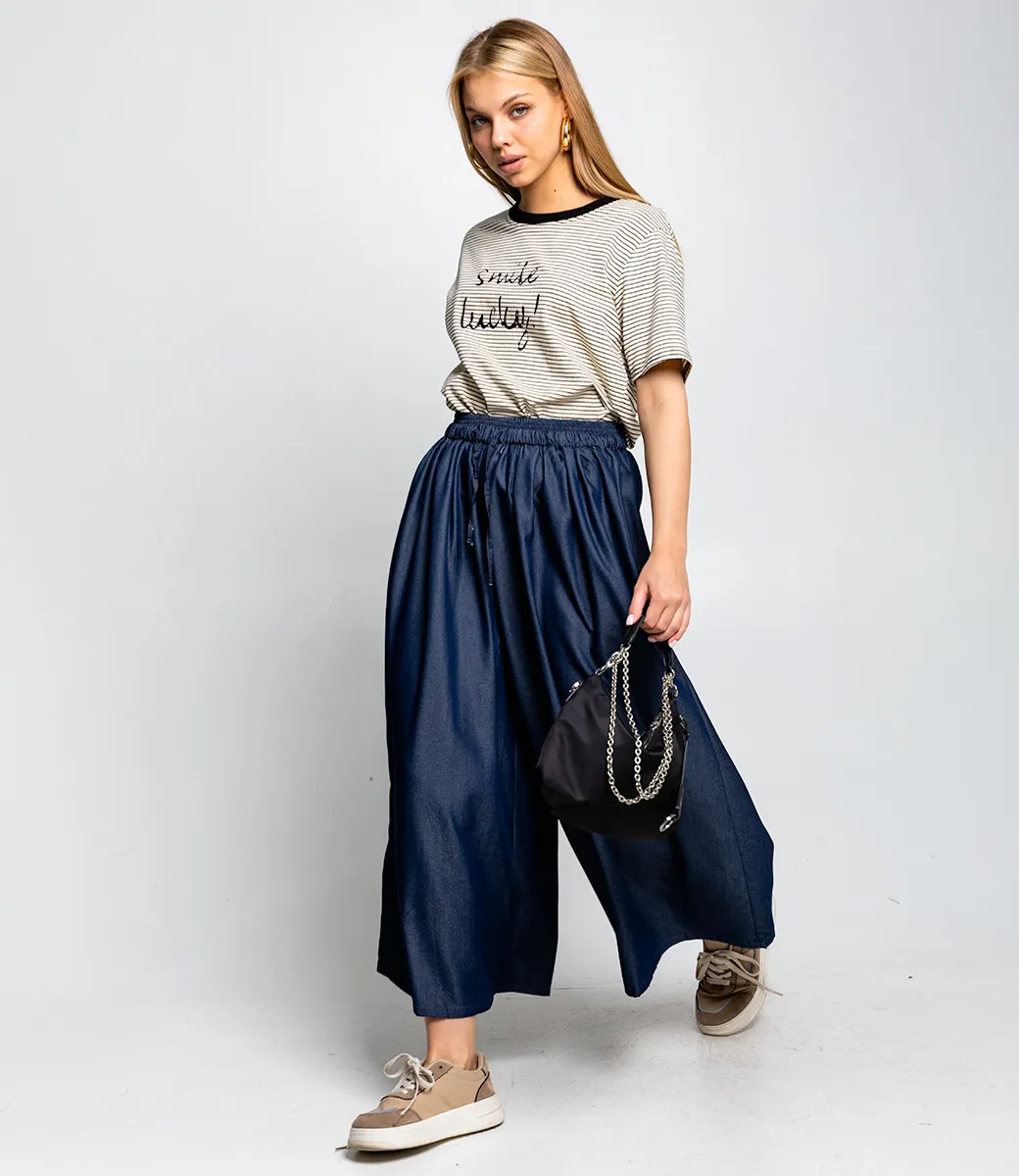 Брюки-кюлоты – это предмет одежды, который подчеркивает женственность и привлекательность каждой представительницы прекрасного пола. Данная модель отлично подойдет для летнего сезона. Ее выбирают женщины, которые ценят сочетание идеального качества и стоимости. Фасон подчеркивает красоту фигуры. Производитель брюк знает, как разработать стильные решения. Для изготовления брюк использована ткань из 35% полиэстера и 65% хлопка, которая выделяется отличным качеством. Даже после многих стирок изделие не потеряет изначальной привлекательности. Обратите внимание на цвет. Он является насыщенным и полностью соответствует фотографии на сайте. Чтобы убедиться в размере, мы предоставили на странице таблицу. Воспользовавшись ею, вы сможете сами обмерить себя и убедиться. Предложенная нами цена является доступной. Подарите себе удовольствие быть элегантной! Параметры модели: рост 168 см., 89-63-90.