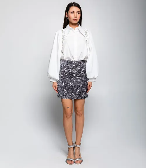 Юбка – это одежда, которая подчеркивает женственность каждой представительницы прекрасного пола. Стильная юбка с пайетками прекрасно подойдет для ярких вечеринок и праздничных мероприятий. Ее предпочитают покупательницы, которые ценят сочетание качества и идеального стиля. Фасон подчеркивает красоту фигуры. Компания-производитель знает, как найти эффектные и модные решения. Для пошива использован полиэстер 100%, который характеризуется отличным качеством и долговечностью. Даже после множества стирок изделие не потеряет первоначальной привлекательности. Вы сможете носить ее с радостью. Обратите внимание на цвет. Он является насыщенным и полностью соответствует фотографии на сайте. Чтобы вы были уверены в размере, мы представили на странице таблицу. Воспользовавшись ею, вы сможете сами обмерить себя и удостовериться. Установленная нами цена является доступной. Не откажите себе в удовольствии быть стильной и запоминающейся! Рост модели 168, 89-63-90.