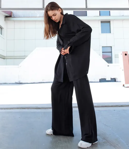 Костюм – это эффектная часть гардероба, подчеркивающая женственность и уникальность каждой представительницы прекрасного пола. Костюм состоит из свободной рубашки и широких брюк, что обеспечивает комфорт и свободу движений. Просторная рубашка выглядит расслабленно и стильно, а брюки подчеркивают талию и создают плавные линии. Стильное и универсальное решение для создания эффектного образа. Для пошива этого костюма использованы ткань с составом 65% хлопка и 35% полиэстера, что гарантирует отличное качество и долговечность. Костюм легко выдерживает множество стирок, сохраняя свою первоначальную привлекательность и комфорт. Обратите внимание на цвет и фактуру ткани – они полностью соответствуют фото на сайте и прекрасно дополнят любой летний образ. Для уверенности в размере мы представили на странице таблицу, чтобы вы могли самостоятельно обмерить себя и убедиться в идеальной посадке костюма. Предложенная нами цена является приемлемой, что делает этот комплект отличным выбором для оптовых покупателей. Не упустите возможность предложить вашим клиенткам этот стильный костюм, который станет их любимым выбором для летних дней! Позвольте вашим покупательницам наслаждаться комфортом и элегантностью с этим великолепным комплектом! Рост модели: 164, параметры: 83-61-89.