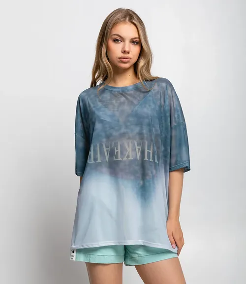 Футболка выполнена из ткани, состоящей на 95% из полиэстера и на 5% из эластана. Модель имеет цвет с оригинальным декоративным принтом на груди в виде стилизованных белых символов. Особое внимание уделено деталям — на манжетах рукавов используется белая кружевная отделка, которая придаёт футболке изящность и является интересным контрастным элементом. Крой футболки свободный, с короткими рукавами и классическим круглым вырезом горловины, что обеспечивает удобство и позволяет сочетать её с разными стилями одежды — от повседневного до более нарядного. Чтобы вы были уверены в размере, мы представили на странице таблицу. Воспользовавшись ею, вы сможете сами сделать мерки и удостовериться. Предложенная нами цена является приемлемой. Не откажите себе в удовольствии быть элегантной. Рост модели 168 см., 89-63-90.